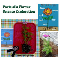 Explain to children that a flower or any plant has different parts: roots, stems, leaves, flowers, and seeds. Flowers produce seeds that can grow into new plants. Flowers have parts on the outside (petals) and the inside (ovule, pistil, stamen, stigma). Flowers will wilt, dry out, and die if they are uprooted from the soil. Cut flowers survive in just water, but only for a few days.