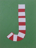 4.Demonstrate to children how they can glue the white pieces on the letter J to make a red and white pattern(see pic2.)