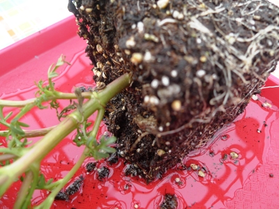 Then, unpot the plant and place it on the tray. Spritz the tray with water so that the plant stays hydrated. Point to the exposed roots and ask children if they know how the roots help the flower grow. Define the work of the roots.