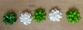 Small red, green, and silver gift bows