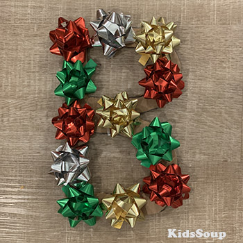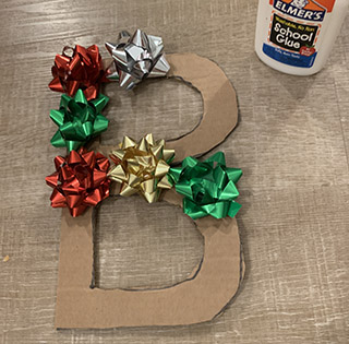 Let the children decorate their letter by gluing on small bows, then display the finished letters around the classroom for a festive touch.